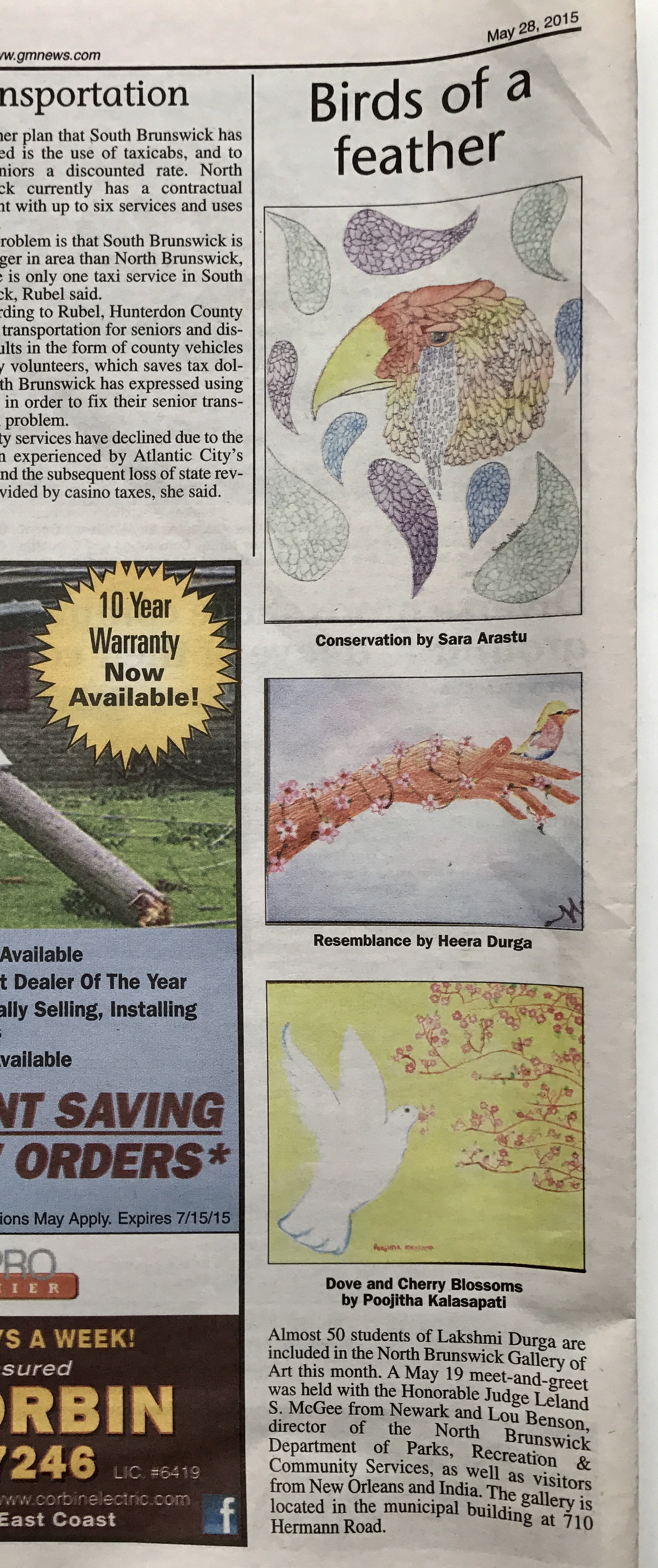 2015 Annual Art Exhibition’s Media Coverage on “Birds “theme in New Jersey on 28th May 2015